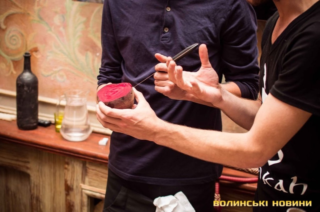 У рамках майстер-класу хлопці вперше в Луцьку приготували кальян на буряковій чаші. Виявляється, для того щоб зробити щось схоже, варто лише спробувати – нічого складного в цьому немає. Попередньо овоч слід вимити, витерти, та зрізати верхню і нижню частину для того, щоб він став пласким.Потім всередині робиться отвір для тютюну, під який із дерев’яних зубочисток споруджують щось накшталт решітки.