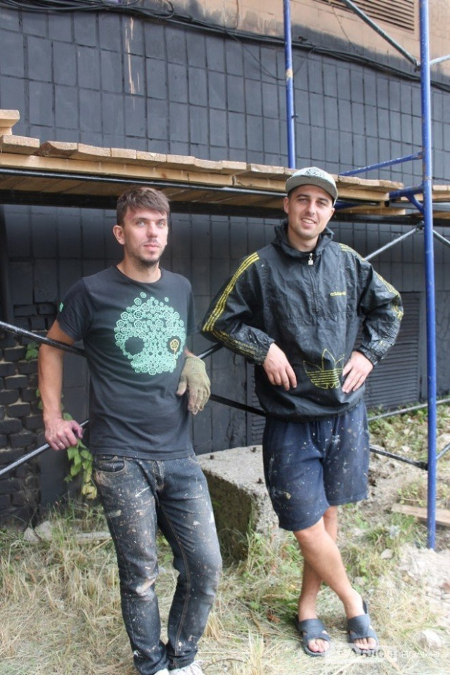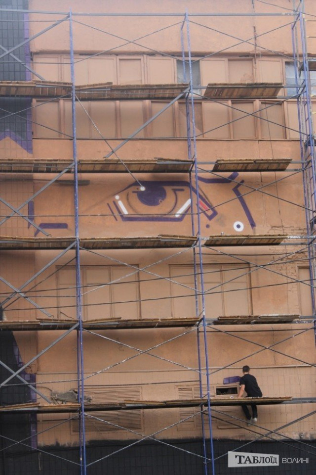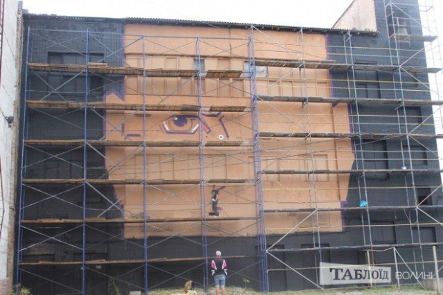 Над створенням велетенського муралу на 15-метровій стіні працюють два художники – Сергій Радкевич та Андрій Присяжнюк, - повідомляє Таблоїд Волині.