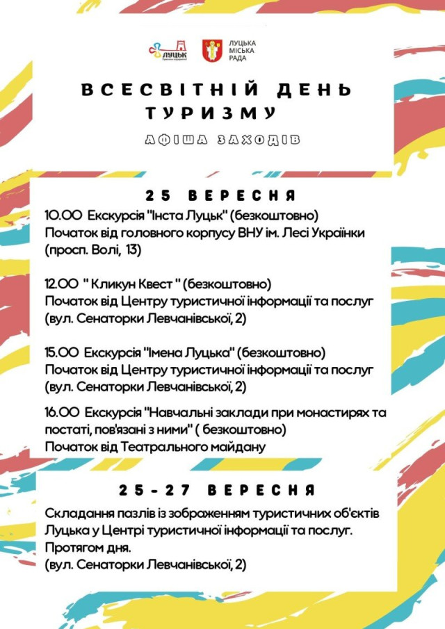 З нагоди Всесвітнього дня туризму протягом 4 днів на лучан та гостей міста чекають цікаві заходи.