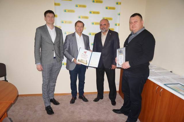 Крайняк залишився задоволений побаченим, а обласна рада відзначила мецената – Карп’юк вручив гостю Почесну нагороду – подяку від голови Волинської обласної ради Ігоря Палиці.