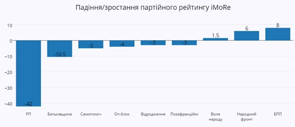 Два інші колишні члени коаліції - "Батьківщина" і "Самопоміч" - теж погіршили свої показники: на 10,5 та 3 позиції відповідно. Вони теж заявили про вихід з коаліції і перестали підтримувати коаліційні законопроекти.Факт 10. "Народний фронт" лідирує в гонці реформаторів.
