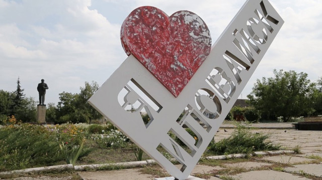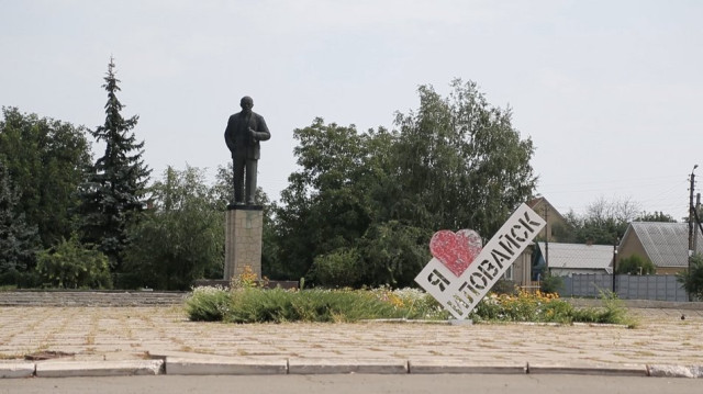Центральна площа Іловайська. Старий пам’ятник Леніну, що зберігся ще з радянських часів. І відносно нова стела для фотографування "Я люблю Іловайськ«.Однак влітку тут порожньо, і туристів в Іловайську майже ніколи не буває.