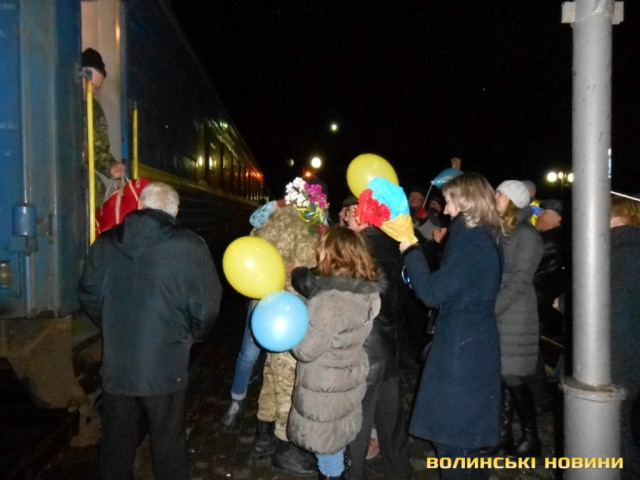 До місця дислокації 14-ої бригади у княже місто бійців привіз потяг «Київ-Львів». І, не дивлячись на пізню годину, зустрічати Героїв війни прийшли кілька десятків небайдужих мешканців міста і, звичайно ж, рідні та друзі вояків. А ще бійці 14-ої бригади, які зустрічали своїх побратимів.