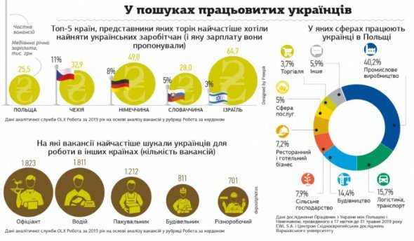 Європейські країни конкурують за українських робітників. Найбільше українських трудових мігрантів хочуть бачити у Чехії та Німеччині. Також серед лідерів Словаччина, Ізраїль та Польща. Найбільша заробітна плата в Ізраїлі та Німеччині 66,7 тис грн та 49 тис відповідно.