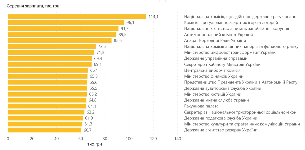 Комісія з регулювання азартних ігор і лотерей – середня зарплата – 96,1 тисячі гривень (працює 59 людей);