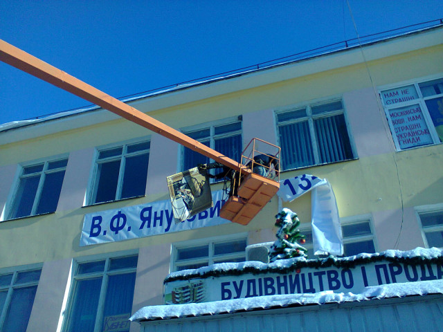 Відносна протестна пасивність у місті була до січня. Та коли на холодну бруківку Грушевського впали перші жертви режиму Януковича, володимир-волинці не витримали. Сотні людей 23 січня прийшли під будівлю в центі міста, на фасаді якої місцевий бізнесмен Сергій Ковальчук ще з літа вивісив транспарант в підтримку тодішнього президента з написом «В.Ф. Янукович – 13-тисячний колектив за Вас». До напису ще й долучили портрет кривавого президента. Громада міста портрет закидала яйцями та зняла разом з транспарантом з фасаду будівлі.