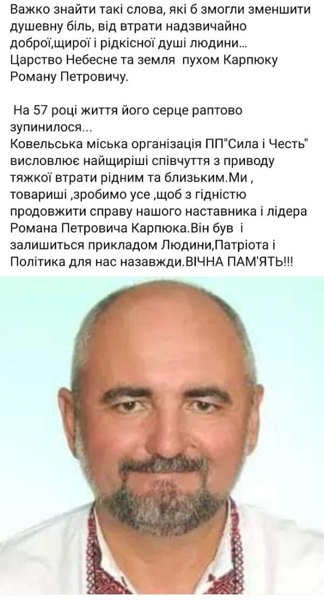 Інформаційне агентство Волинські Новини висловлює щирі співчуття рідним та близьким Романа Карпюка.