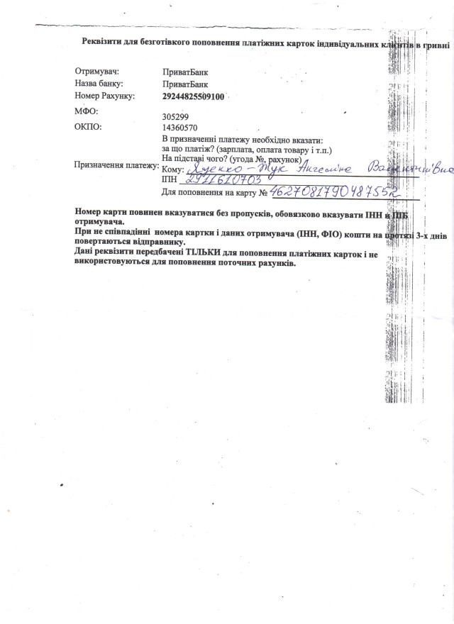 Відкрийте рахунок картковий у Приватбанку - так набагато більше людей зможе допомогти