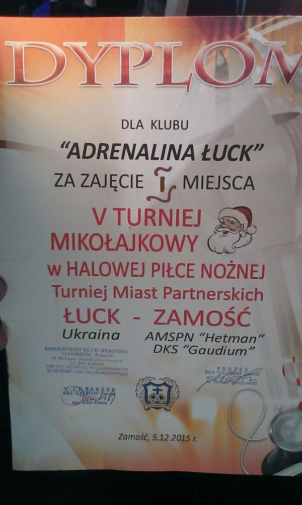 Юні луцькі футболісти позмагалися з польськими на V-му Миколаївському турнірі міст-побратимів (V Mikołajkowy Turniej Miast Partnerskich), що відбувся у Замості. Як відомо, свято Святого Миколая римо-католики святкують 6 грудня. Про це пише «ВолиньPost».