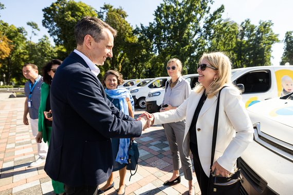 Першу партію із 10 автомобілів передала під час офіційного візиту виконавча директорка ЮНІСЕФ Кетрін Рассел. Про це повідомили в МОЗ.