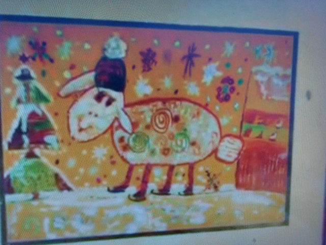 Валерія зобразила зиму у жовтих кольорах, а саму вівцю – на ковзанах. Саме таку дитячу безпосередність і фантазію, напевно, оцінили японські поціновувачі мистецтва.