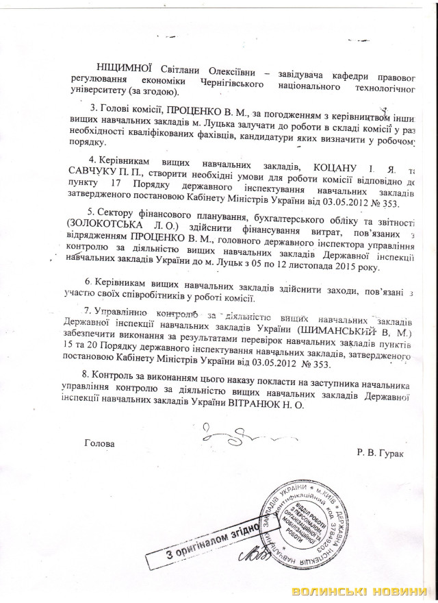 Так, 5 листопада до Луцька з Києва для здійснення перевірки вищезазначених ВНЗ відрядили комісію.