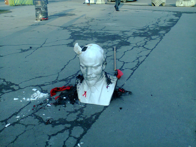 Гіпсову скульптуру вождя світового пролетаріату активісти поставили на центральній площі міста аби кожен міг «помилуватися» комуністичним ідолом. Також з офісу комуністів винесли усю партійну символуку та спалили її. Постраждав від пожежі й Ілліч, але його навіть підсмаленого та побитого комуністи забрали назад.