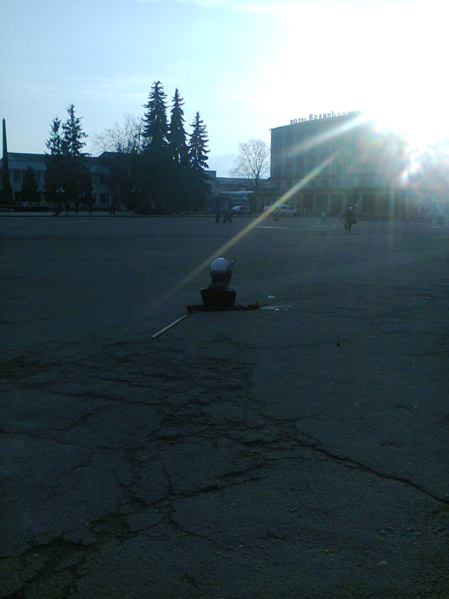 Більше години 24 лютого простояв на центральній площі Володимира-Волинського бюст Леніна, якого активісти Майдану винесли з офісу Комуністичної партії.