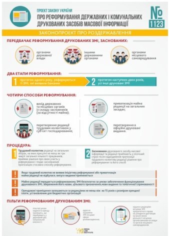 З 1 січня 2016 року набирає чинності законопроект №1123 «Про реформування державних і комунальних друкованих засобів масової інформації», який підтримала Верховна Рада.