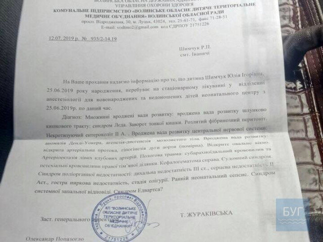 Нагадаємо, через множинні вади розвитку в дуже критичному стані дитина перебуває в Луцьку в обласній дитячій поліклініці у відділі інтенсивної реанімації. Дівчинці зробили вже дві операції на кишечник.