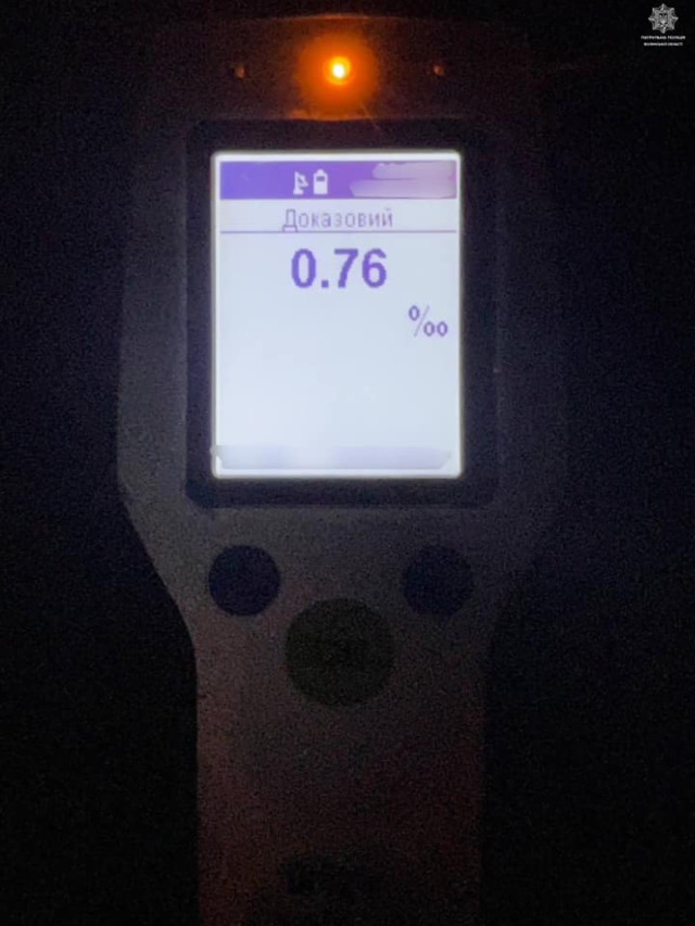 У Луцьку інспектори зупинили авто Ford, який рухався в темну пору доби без увімкненого ближнього світла фар. Під час спілкування з водієм, поліцейські помітили ознаки алкогольного сп’яніння. Драгер показав 0,76 проміле.