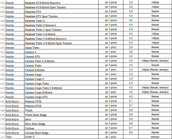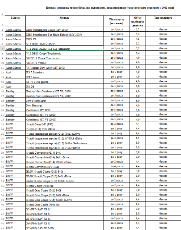 Міністерство розвитку економіки, торгівлі й сільського господарства опублікувало список моделей автомобілів, за які потрібно платити податок українцям в 2021 році.