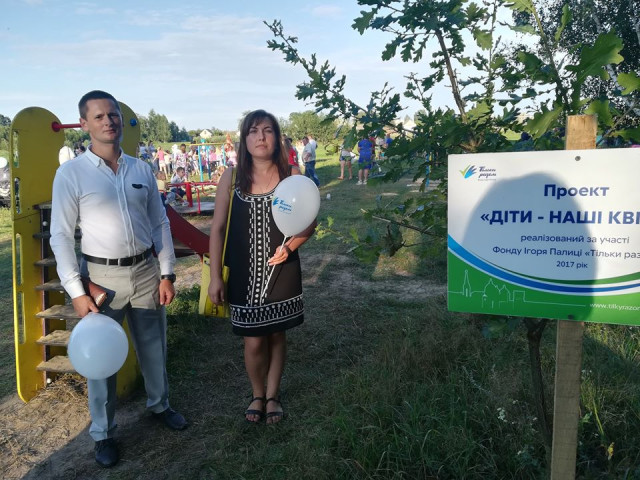 Урочисте відкриття дитячого майданчика приурочили до Дня села. Отож зібралися майже усі жителі та їхні гості. Виступи вокальних колективів, вітальні слова, лотереї більше вабили дорослих, а от малечу розважали аніматори, яких з нагоди свята запросили представники Фонду Ігоря Палиці «Тільки разом».
