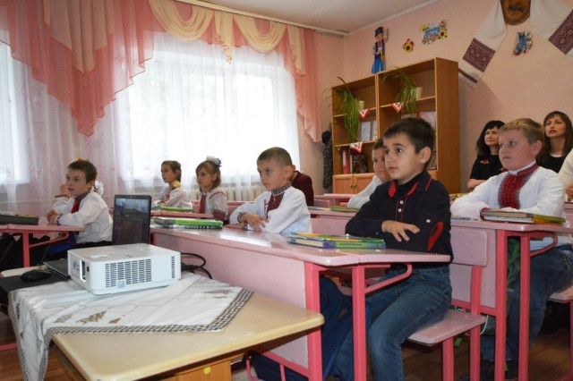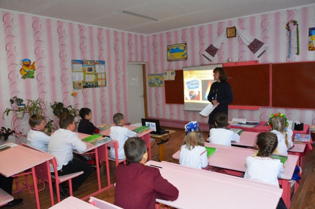 Тим часом третьокласники вже випробовують нове обладнання. Урок природознавства проходить з використанням проектора та ноутбука. Учитель пояснює школярам новий матеріал, демонструючи зображення на екрані. Для підкріплення теми гуртом розв’язують кросворд.