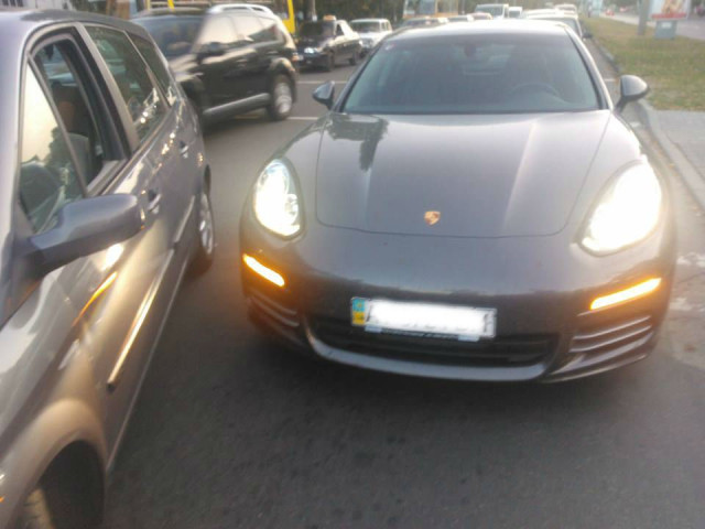 Нагадаємо, у вересні 2015 року «Тарарай Олег дуже швидко (приблизно більше 120 км /год) і, створюючи аварійні ситуації, одну за одною, мчав на Porsche Panamera проспектом Соборності, «підрізав» інші авто, які просто шарахались в бік. І тільки завдяки тому, що Porsche - не вертоліт, мусив зупинитися перед машинами на червоному», - повідомляв тоді Рижков. Фото Porsche - з місця тієї події:Додамо, що невдовзі після інциденту та публікації про Олега Татарая, сина аграрія Василя Тарарая, автора допису Сергія Рижкова жорстоко побили невідомі в балаклавах поблизу його будинку.