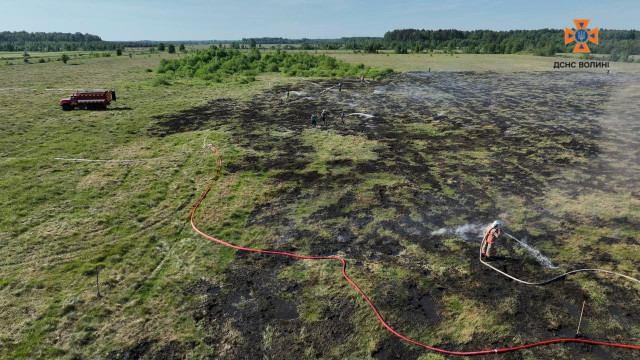 Сьогодні вранці до служби 101 надійшло повідомлення про пожежу на торф’янику в урочищі «Вездрів’є» поблизу села Воєгоща Камінь-Каширського району.
