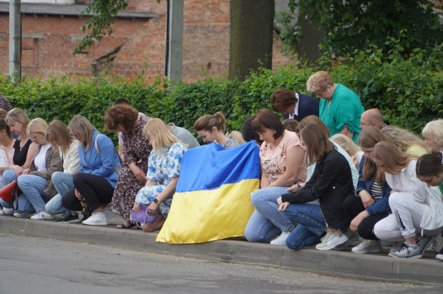 Скорботний кортеж, який рухався містом від моргу, а потім від дому на вулиці Ковельській, де минуло дитинство Героя, до храму Віри, Надії, Любові та матері їх Софії, супроводжував коридор шани, котрий сформували, стоячи навколішки із синьо-жовтими прапорами у руках, мешканці громади, повідомили у міській раді.