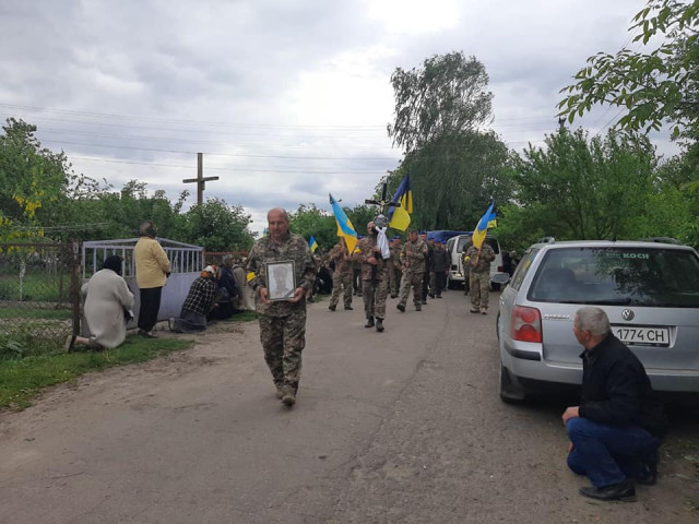 Чимало мешканців громади прийшли провести Героя в останню путь, серед них – рідні, друзі, представники влади, односельці, побратими та небайдужі люди. Супроводжував жалобну ходу військовий оркестр та нацгвардійці, які приїхали вшанувати пам'ять побратима. Поховали Героя у рідному селі.Довідка