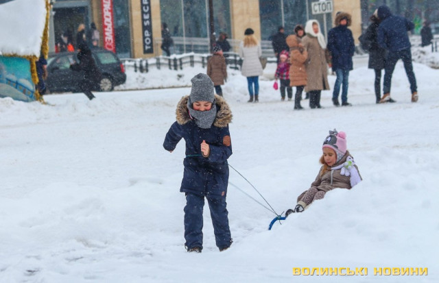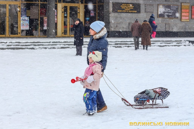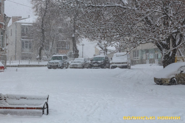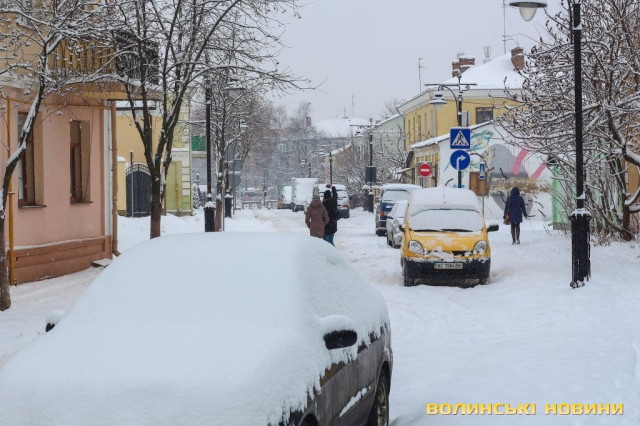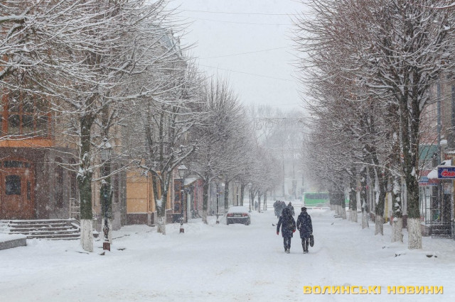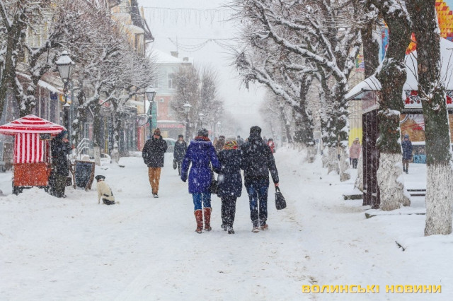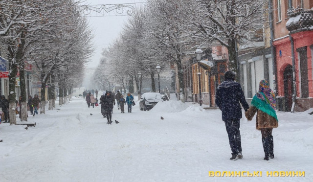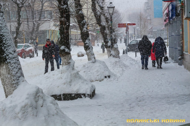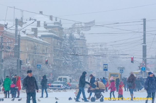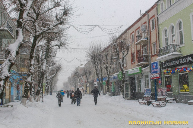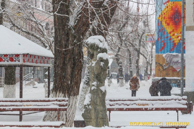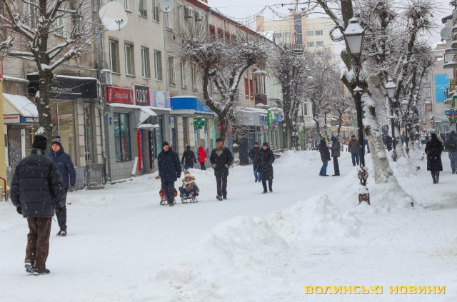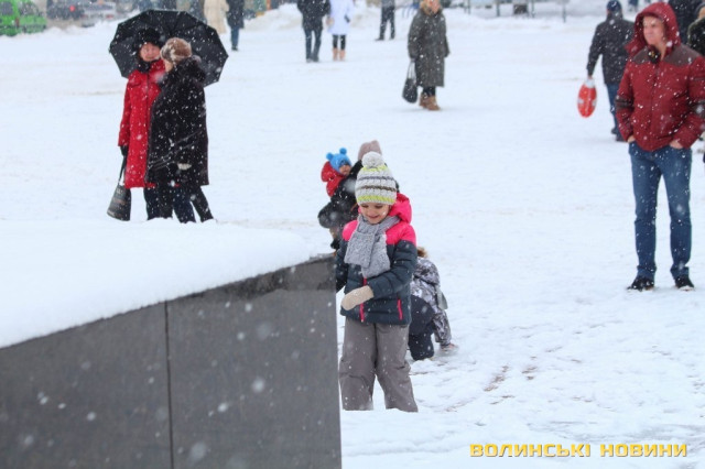 Заметіль у святковому Луцьку. ФОТОРЕПОРТАЖ