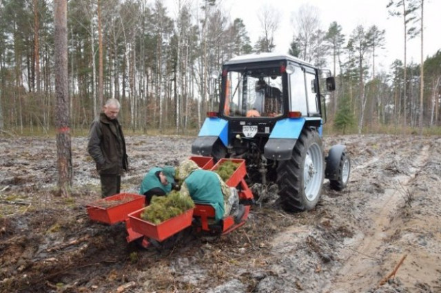 Задіяні для посадки 4 чоловіки: двоє саджають культури, а двоє ущільнюють ґрунт та стежать, чи якісно посаджаний сіянець. Для прикладу: при ручному садінні для 1 га створення культур потрібно 16 чоловік", - йдеться у повідолменні.
