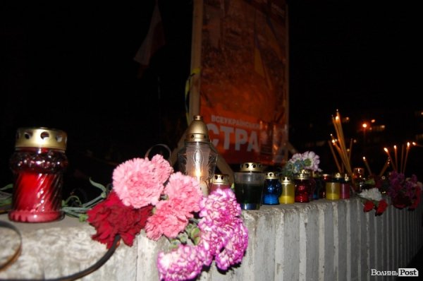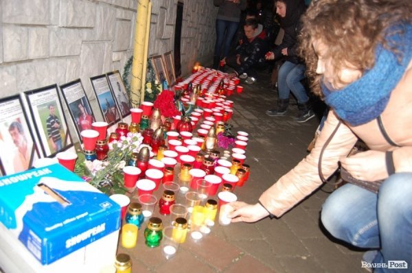 Понад сотня людей прийшли на луцький Майдан і запалили свічки на знак скорботи за полеглими на Майдані у Києві.
