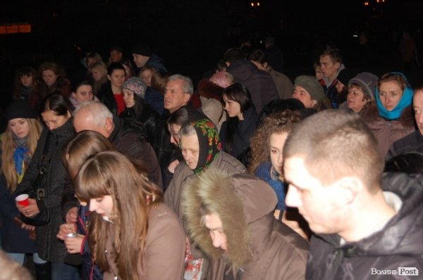 Окрім того, на сходах Волинського облмуздрамтеатру розмістилася ще одна група людей, які молилися за пам’ять померлих на Майдані.