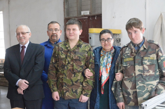Тим часом деревообробні верстати, що їх Фонд придбав у 2015 році, теж не припадають пилом. У столярів виробниче навчання проходить під пильним оком майстра з двадцятирічним досвідом В’ячеслава Романюка. Хлопці навчаються на третьому курсі, та столярну справу вивчають перший рік. Вони вже вміють працювати з ручним інструментом, зараз опановують механічну обробку деревини. Наявність верстатів дозволила залагодити «меблеві» питання для самого училища. З допомогою нового верстата студенти виготовляють меблі для потреб навчального закладу: реставрують учнівські столи, парти.