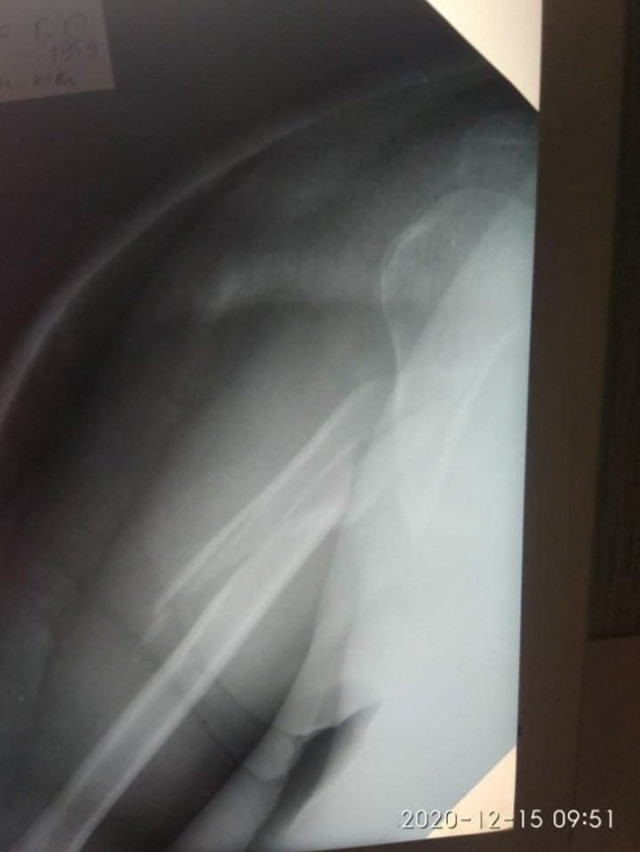 Діагноз: Закритий багатовідламковий перелом діафізу правої плечової кістки», – йдеться в дописі.