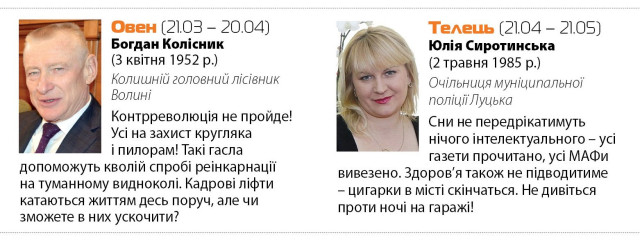 Щотижневе видання – газета «Волинські Новини» – пропонує читачам жартівливо-політичний гороскоп. Нагадаємо, 9-й номер нового обласного тижневика побачив світ сьогодні, 31 березня 2016 року.