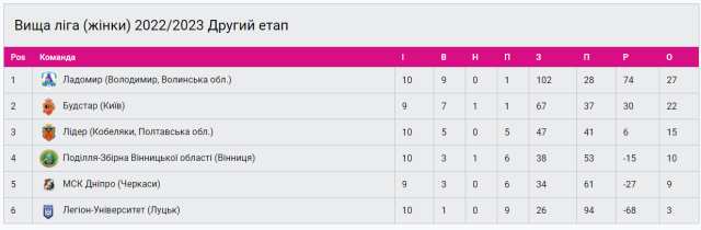 «Зважаючи на те, що основу нашого клубу складають дівчата, яким ще не виповнилося і двадцяти років, вважаю цінним здобутком сезону позицію міцного середняка, що готовий дати бій будь-якій команді. Щиро дякую «легіонеркам» за самовідданість на майданчику, професійне ставлення до праці гравця, яку вони виконують на громадських засадах. Дякую їм за цей сезон, який ми провели як справжня команда», – підсумував тренер.Фінальну турнірну таблицю наведено нижче.Нагадаємо, цьогоріч чемпіонат України з футзалу тривав у два етапи. На першому етапі волинські команди змагалися із «Бугом» (Сокаль) та «ДЮСШ-1» (Хмельницький). У підсумку вперше в історії дві команди з Волині вийшли у фінальний етап.