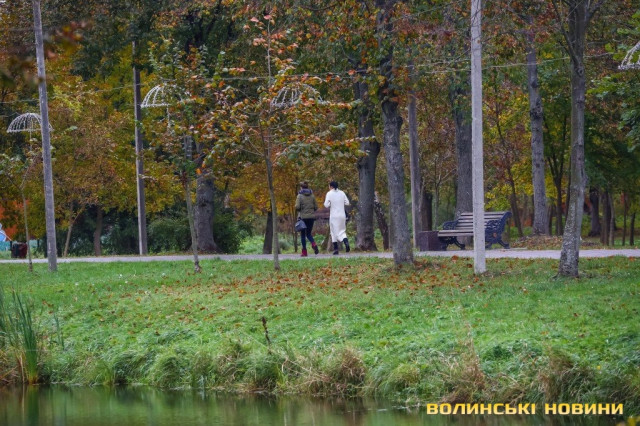 В улюбленій зоні відпочинку лучан нині панує осінь – через прохолодну погоду відвідувачів парку у вихідні поменшало, втім, часто родини із маленькими дітьми обирають саме парк як локацію для прогулянок, під час яких можна насолодитися тишею затишних алей, шурхотом опалого листя та погодувати жвавих пернатих жителів каналів парку.