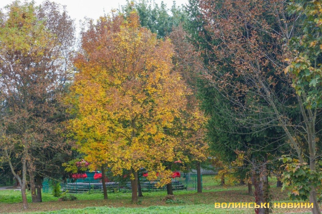 Поєднання жовтогарячих та зелених барв, шурхіт опалого листя алеями, прохолодні вітри та спокій: таким постає образі центрального парку культури та відпочинку імені Лесі Українки у перші тижні жовтня.