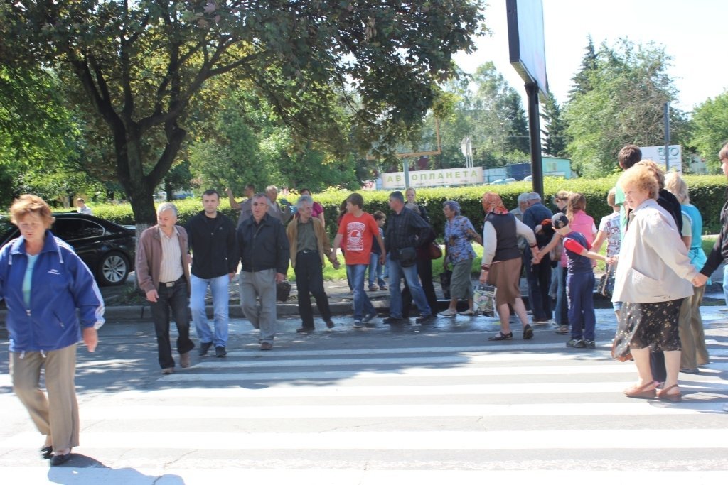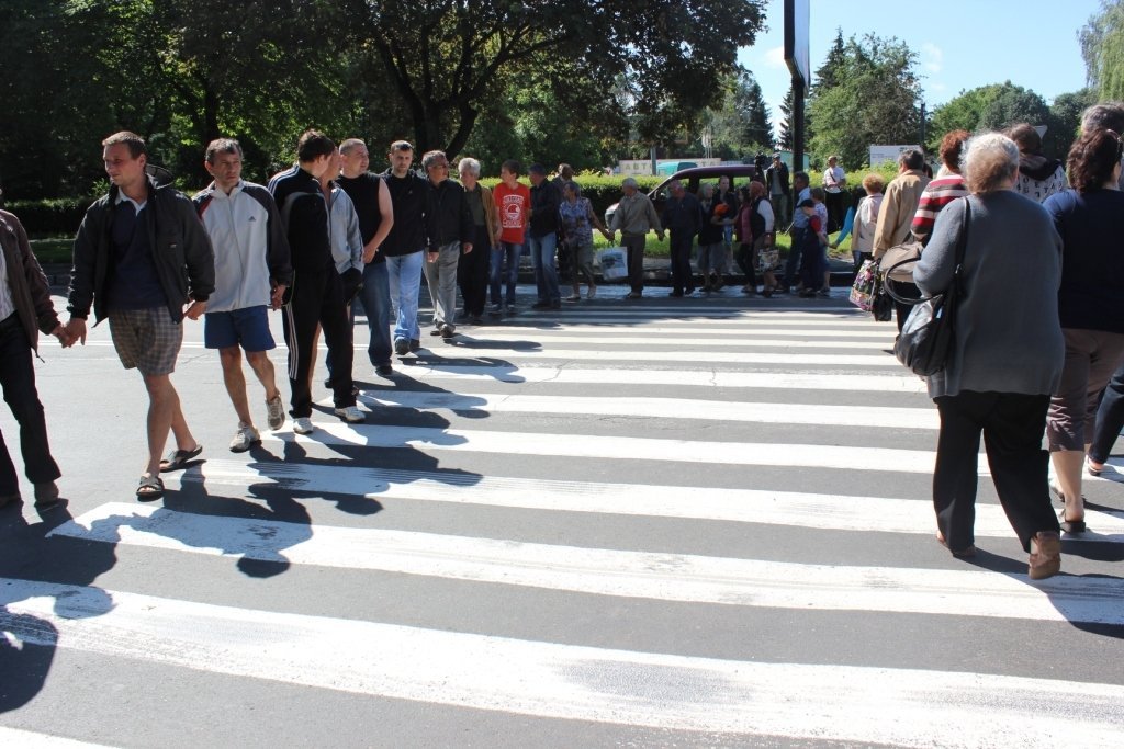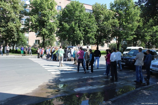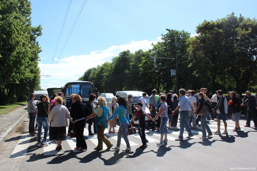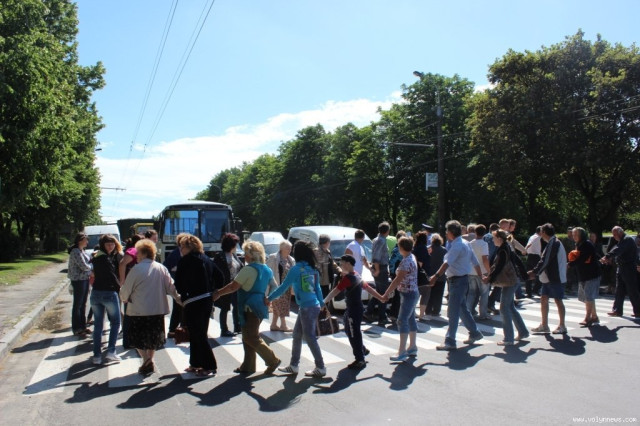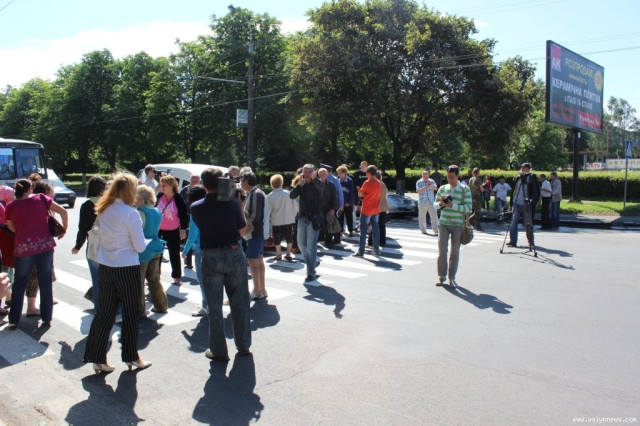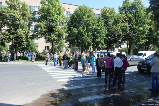 Тож люди вдалися до акцій протесту. Приблизно о 10.30 близько сорока осіб вийшли на вулицю Рівненську і пішохідному переході почали перетинати дорогу, таким чином заблокувавши рух.