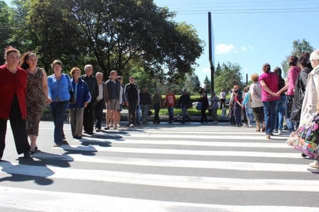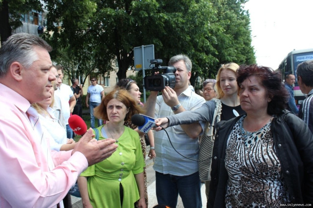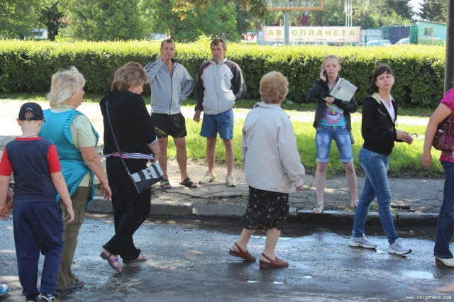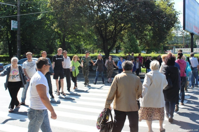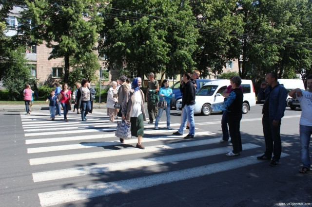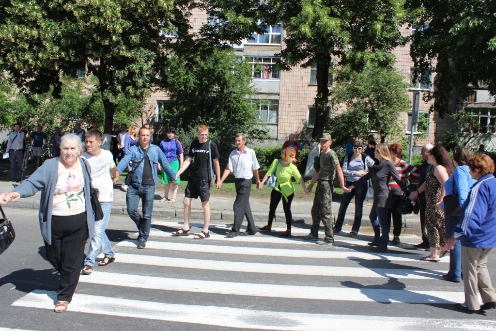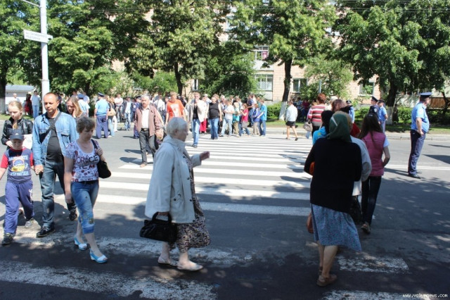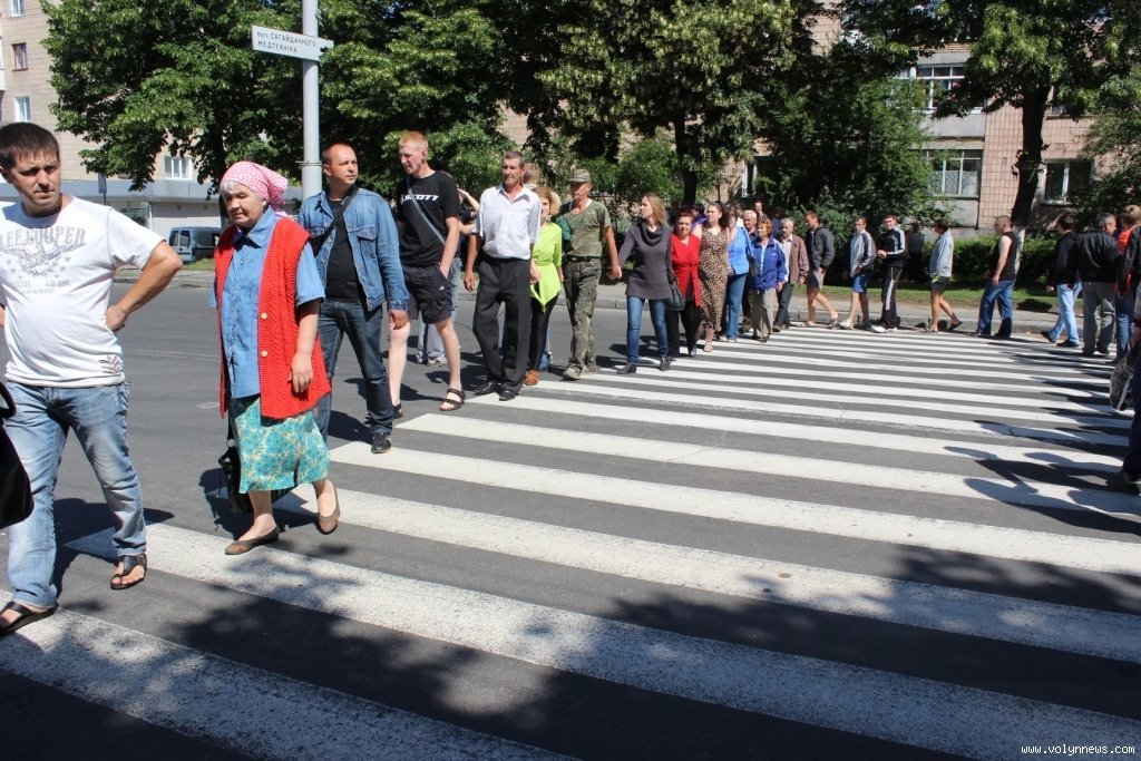 Тож люди вдалися до акцій протесту. Приблизно о 10.30 близько сорока осіб вийшли на вулицю Рівненську і пішохідному переході почали перетинати дорогу, таким чином заблокувавши рух.