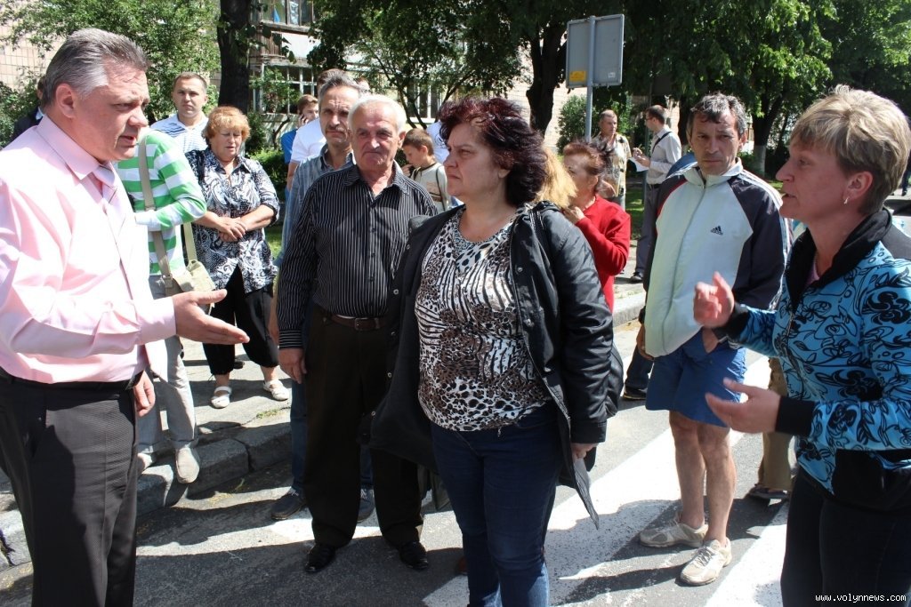 Приблизно о 10.20 до Луцька прибула експертна комісія з Рівного, яка мала оглянути 3-й і 4-й під’їзди п’ятиповерхівки на вулиці Рівненській, де 10 червня стався обвал. Однак експертів одразу оточили мешканці, які почали вимагати результатів перевірки, яку комісія провела 11 червня.