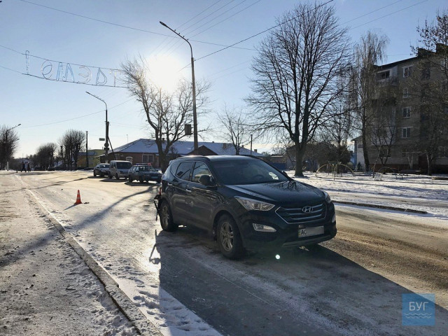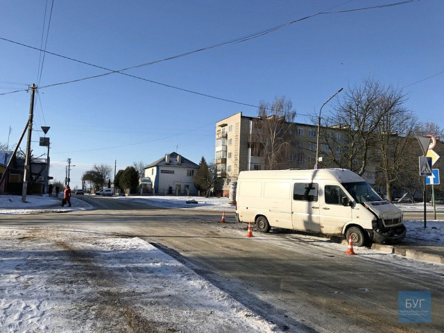 Автомобіль «Нyundai» рухався по головній дорозі – проспекту Перемоги, бус «Volkswagen LT» по Соборній, ліворуч від легковика. За словами поліцейського, який працював на місці ДТП, водій буса розповів, що загальмував перед перехрестям, та його почало “нести”. Відбулося зіткнення автомобілів.