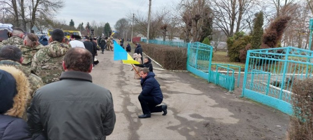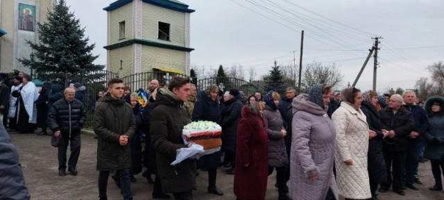 Під звуки військового оркестру усією громадою проводжали траурний кортеж із домовиною вірного сина України з рідної домівки до місцевого храму та місця спочинку.