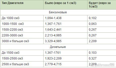 Для розмитнення автомобіля з однолітровим двигуном знадобиться заплатити 63 євро замість тисячі сімсот шістьдесят одного євро, для розмитнення дволітрового авто, потрібно буде заплатити 534 євро замість 4882 євро.
