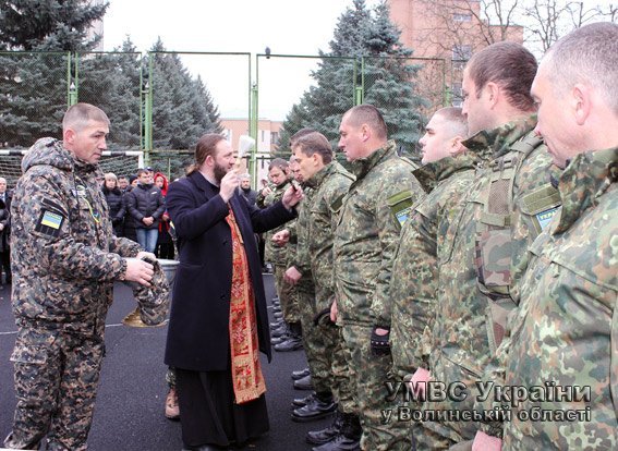 «Всі ми знаємо, яка ситуація зараз на Сході, час важкий, – із такими словами звернувся до підлеглих начальник УМВС України у Волинській області Петро Шпига. – Особисто від себе, від членів колегії УМВС, від колективу бажаю вам щасливої дороги і Божого благословення, щоб ви з честю та гідністю виконали свій обов’язок та живими і неушкодженими повернутися додому».