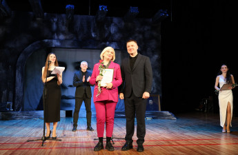 З нагоди свята заступник голови ОДА вручив відзнаки артистам та колективу драмтеатру.