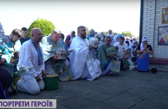 Молилися на колінах: на стінах волинського храму розвісили портрети Героїв, які намалював військовий
