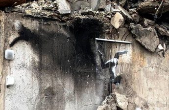 Всесвітньо відомий митець в кінці минулого року створив у Бородянці дві своїх роботи. Одну – на зруйнованій будівлі котельні дитсадка «Буратіно», іншу – на спаленому російськими авіабомбами будинку № 353 по вул. Центральній.