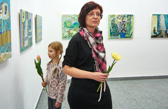 У Малій залі Галереї мистецтв сьогодні, 3 березня, луцька художниця Ольга Кучма презентувала свої художні роботи, об’єднані під тематичною назвою «Небилиці»