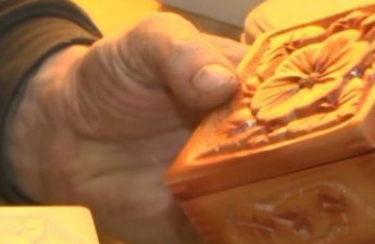 Волинський атовець Юрій Жук виготовляє різьблені з дерева скриньки та кухонні набори. Це ремесло, розповідає волинянин, допомагає йому відновитися після травм, які отримав під час війни на сході